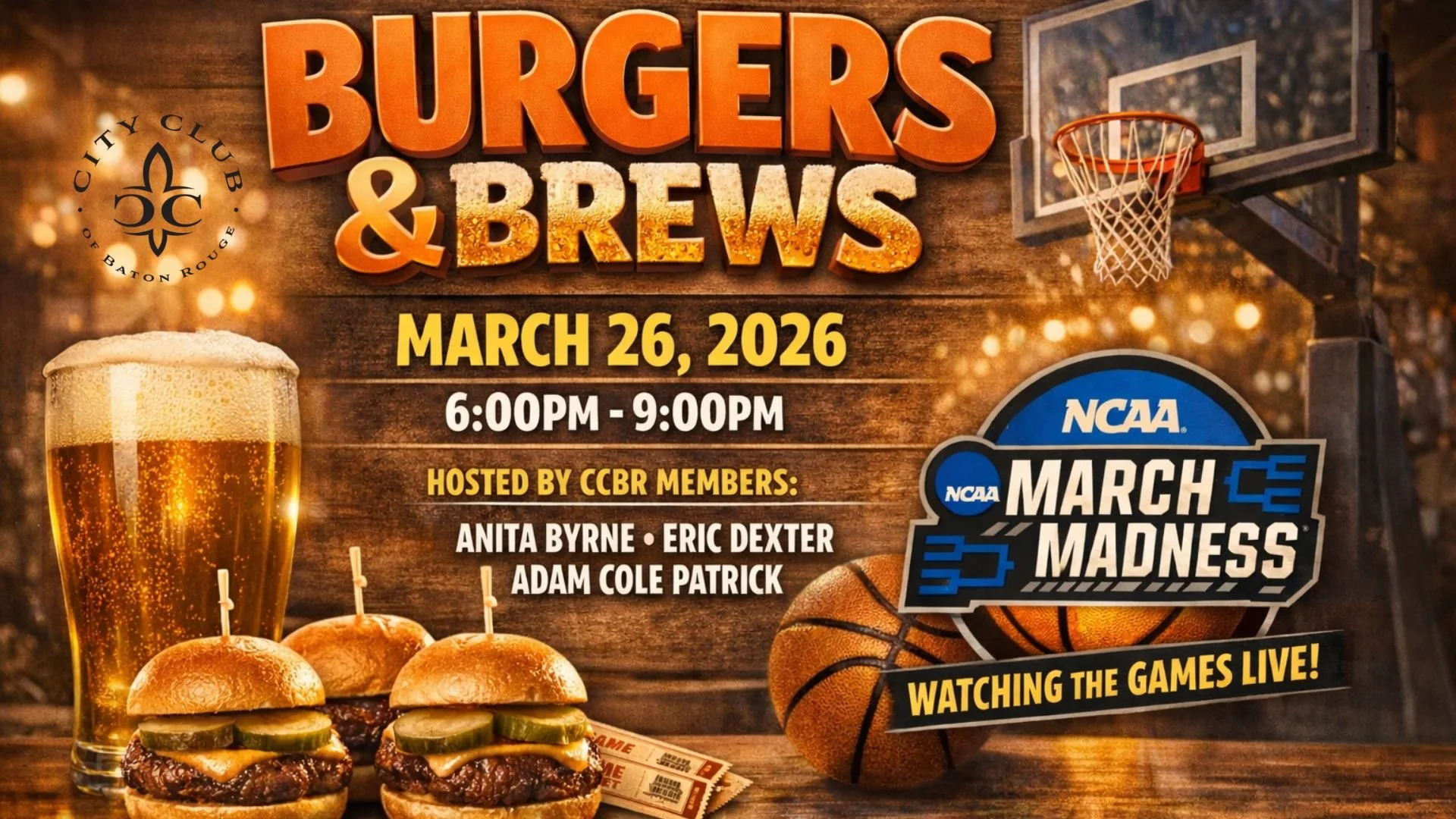 Join us for Burgers & Brews during NCAA March Madness! Catch the game while enjoying gourmet burger bites paired with a rotating selection of brews from local breweries.