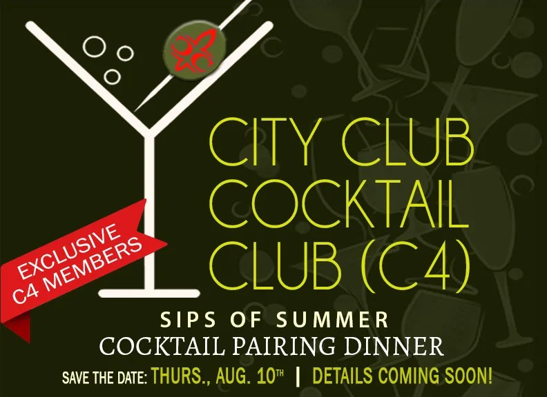 • The C4 Cocktail Club is available to all City Club members. Perfect for all levels: from mixology newbies to the cocktail enthusiast.