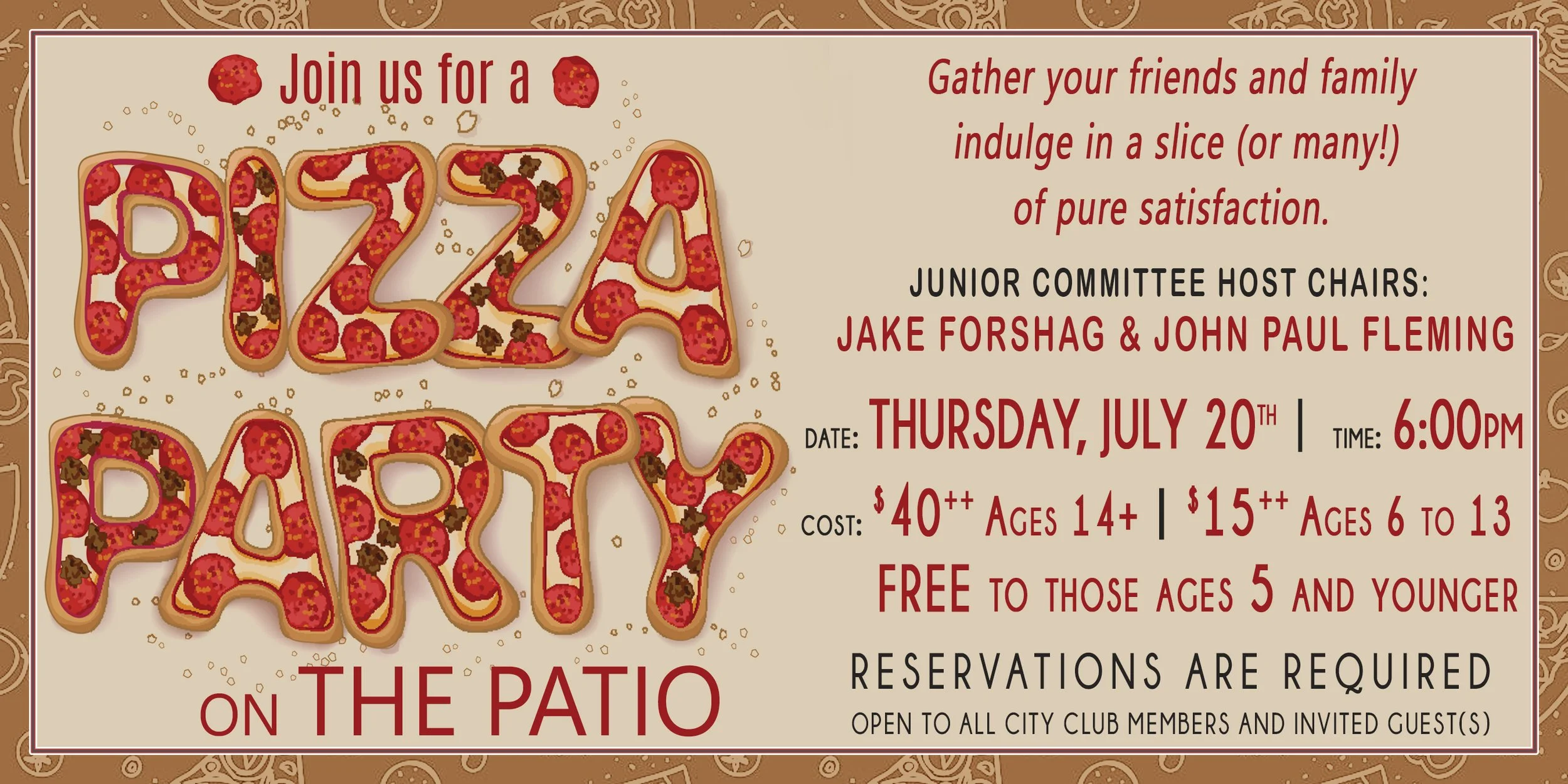 Secure your spot today and come join us – Family Friendly Pizza on the Patio awaits!
