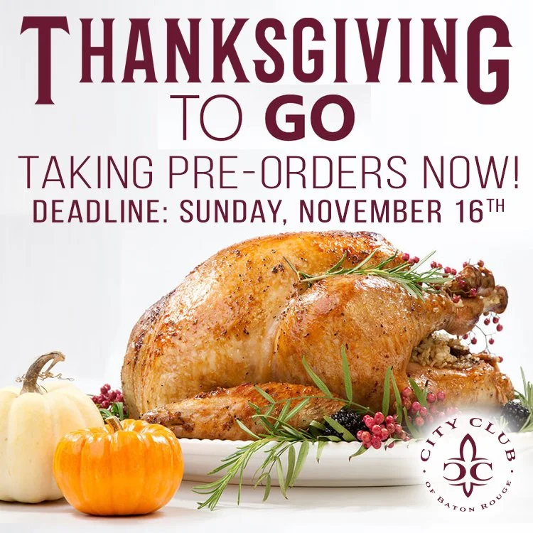 City Club will be CLOSED on Thursday, November 27th, and on Friday, November 28th in observance of the Thanksgiving Holiday. We will re-open with normal business hours on Saturday, November 29, 2025.